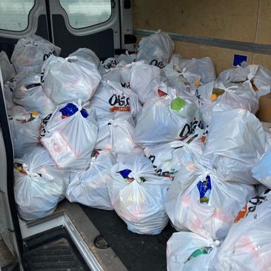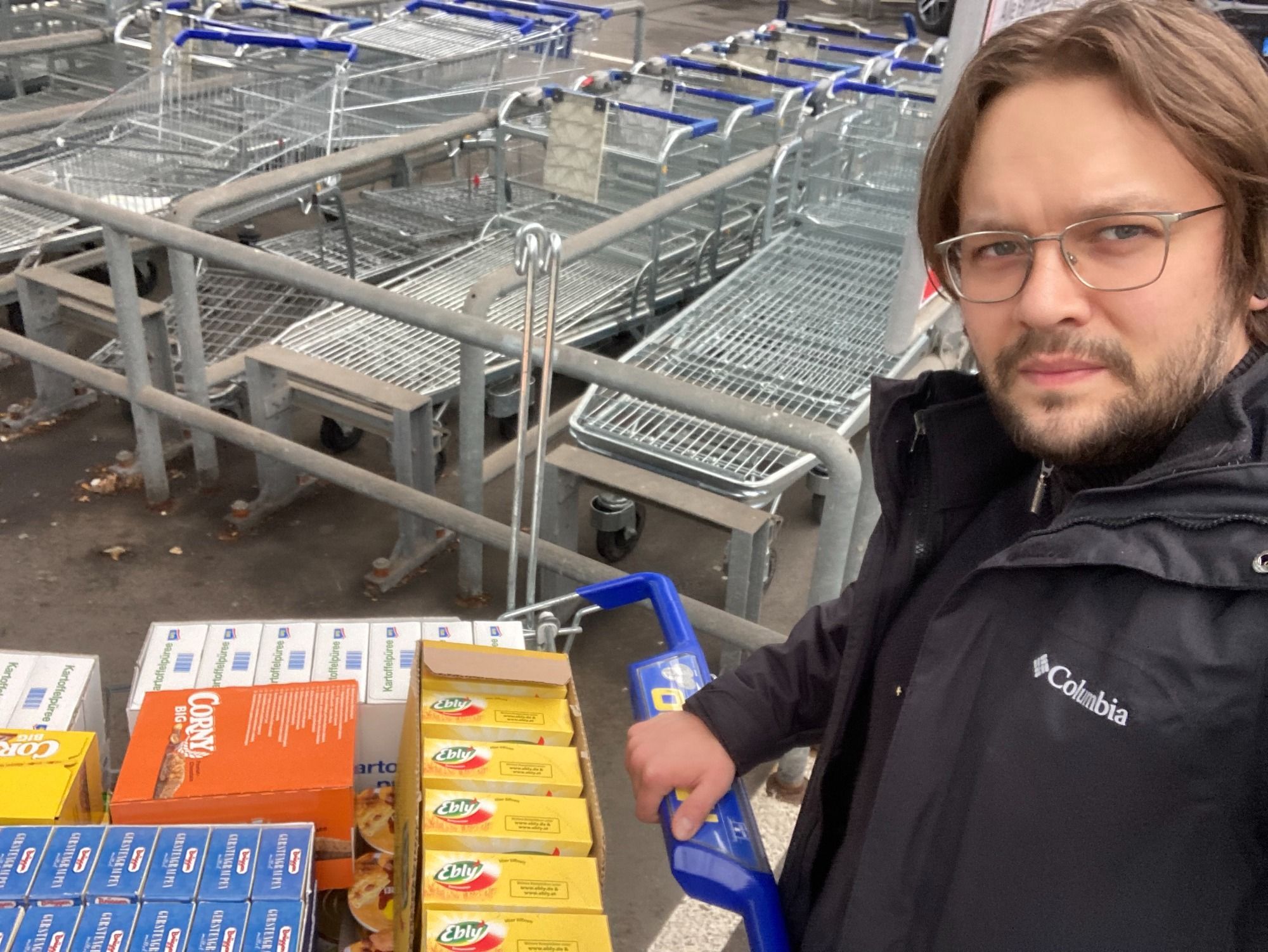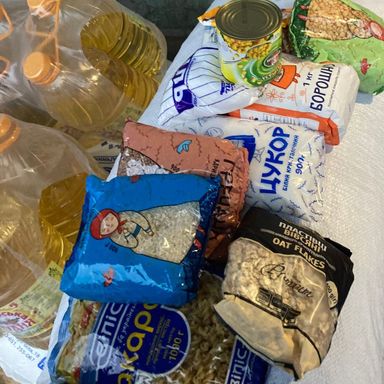 Wir haben in Rivne, einer Stadt im Nordwesten der Ukraine, ein Zentrum für Binnenflüchtlinge unterstützt. Wir haben vor Ort in einem Supermarkt 50 große Tüten mit Lebensmitteln packen lassen.