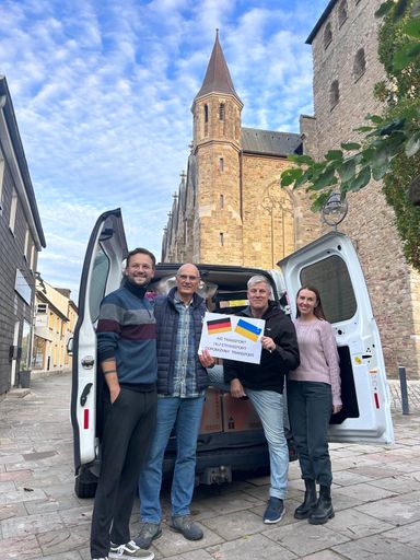 Die beiden Fahrer sind wohlbehalten zurückgekehrt. Die gesamte Spendenfahrt verlief hervorragend. Der Verein „Ukraine wir kommen“ hat in Riwne in Kooperation mit der Stadt Essen noch einen Krankentransporter an eine Klinik überreicht und mehrere Laptops an eine Schule. Super Arbeit!