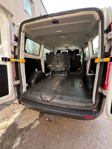 Treffen am Rasthof Ohlingser Heide an der A3 bei Solingen. Sven und Manfred fahren den weißen, Pia und Matthias den roten Transit.