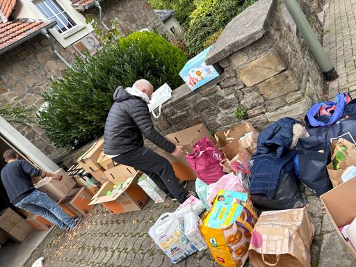 Endlich wieder vor Ort. Gestern sind wir in Kyjiv angekommen, heute Morgen haben wir unseren Transporter leergemacht , Maria (ganz rechts) und ihre Helfer haben die Lieferung, vor allem Windeln, Feuchttücher, Mengen an Babynahrung und Hygieneartikel, sortiert. Nur zur Erinnerung: Kinder haben das alles möglich gemacht: die Schülerinnen und Schüler der Gerhart-Hauptmann/-Schule in Velbert haben einen Spendenlauf unternommen und fette 3500 Euro ersprintet. Respekt. Unser Verein hat noch 3000 Euro draufgeht. Um heute in Kyjiv einzukaufen. Morgen beginnt die Verteilung an die Familien.. Dann melden wir uns wieder.